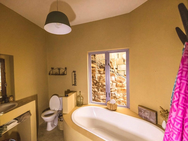 This thoughtfully designed cottage features one tastefully furnished bedroom, fitted with a queen-size bed. The en-suite bathroom is equipped with a shower, a toilet, and a washbasin, providing comfort and practicality.