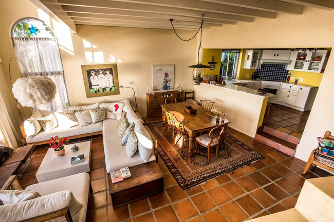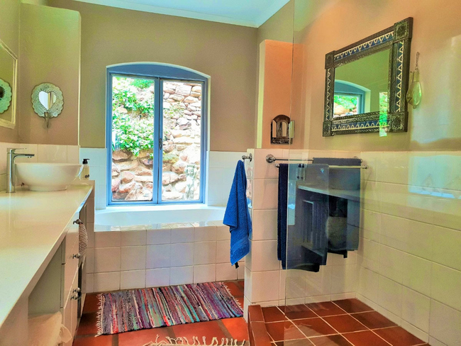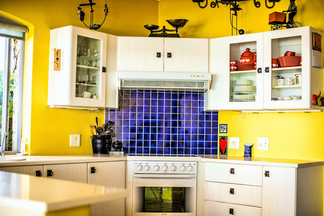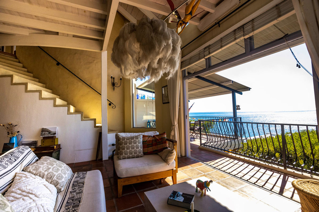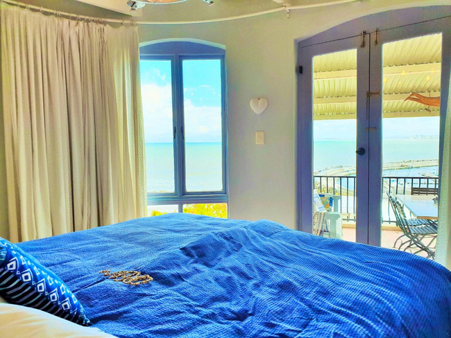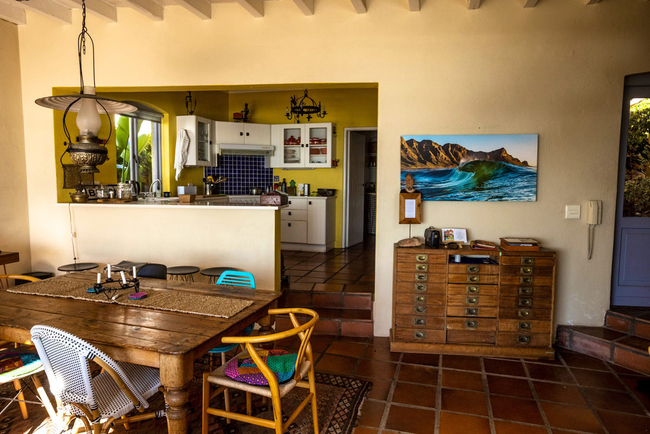 Cardamom House is a self catering holiday home in Gordons Bay boasting stupendous sea views from all areas. There are two bedrooms furnished with a King-size bed and each has an en-suite bathroom. The first is fitted with a bath, shower, toilet and basin. The second bathroom is fitted with a shower, toilet and basin. There are two living and relaxation areas, and a fully equipped kitchen with all the mod cons to ensure a relaxing break for the whole family. The mezzanine level on the top floor offers another comfortable seating and reading area with a day bed! Home away from home is hardly a term worthy of what to expect. Books, collectables, cd's, art, artefacts and a lifetime of love and creativity has been poured into this home to make it an experience like none other!
