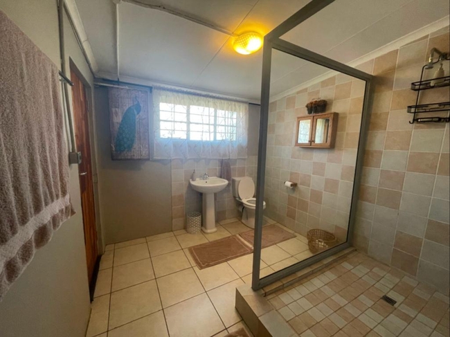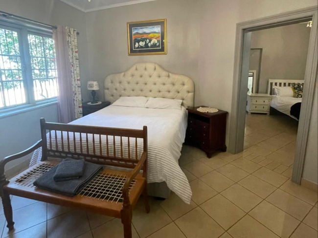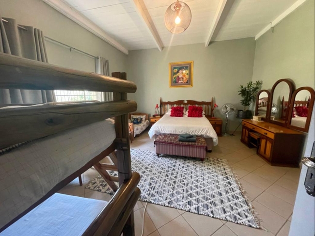 The 9-Sleeper Holiday Home is a spacious and well-appointed getaway featuring five bedrooms, three en-suite bathrooms, and one separate bathroom. The fully equipped kitchen includes an oven, fridge, microwave, and all the essentials for self-catering. Some rooms are enhanced with a bar fridge and coffee/tea facilities for added convenience. Guests can relax in the comfortable sitting area, enjoy meals at the dining table, or unwind on the patio or balcony with outdoor furniture and a dining area. The house shares a swimming pool with two other units and offers views of the pool in a peaceful, non-smoking setting. Additional amenities include a TV with DStv and a variety of indoor and outdoor comforts.