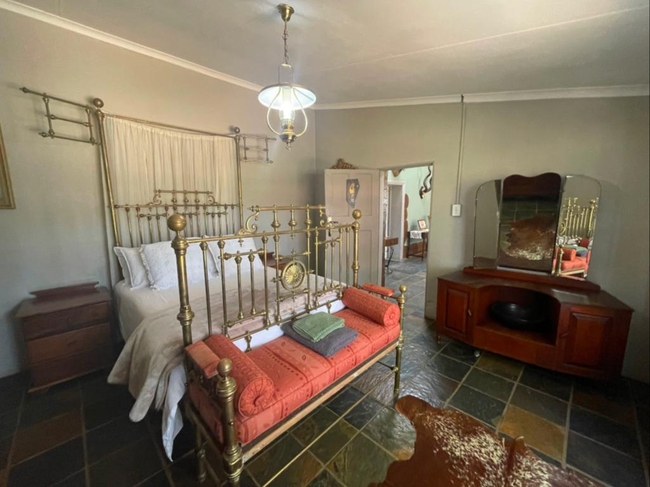 The 8-Sleeper Ox Wagon Cabin offers a truly unique and charming experience, with guests accommodated in four fully restored, cozy, and carpeted ox wagons, each featuring a double bed. The bathrooms are located separately from the wagons for shared use. Guests enjoy access to a private thatched patio equipped with a gas hob, refrigerator, dining table, fireplace, comfortable seating, and a dedicated braai area. This non-smoking accommodation also includes coffee and tea facilities, a kitchenette with a two-plate stove, and outdoor furniture for relaxing or dining al fresco in a distinctive and memorable setting.