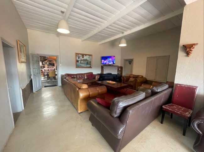 The 13-Sleeper Holiday Home is a spacious and family-friendly retreat, featuring five comfortable bedrooms, two cots for young children, and three full bathrooms with separate tubs and showers. The open-plan layout includes a large lounge area, a fully equipped kitchen with an oven, fridge, and microwave, and a welcoming dining space. Outdoors, guests can enjoy an expansive garden, braai facilities, and access to a communal pool—ideal for relaxing and entertaining. Additional amenities include a TV with DStv, sitting areas, fans, coffee and tea facilities, and a patio, all within a non-smoking environment and set against a peaceful garden backdrop.