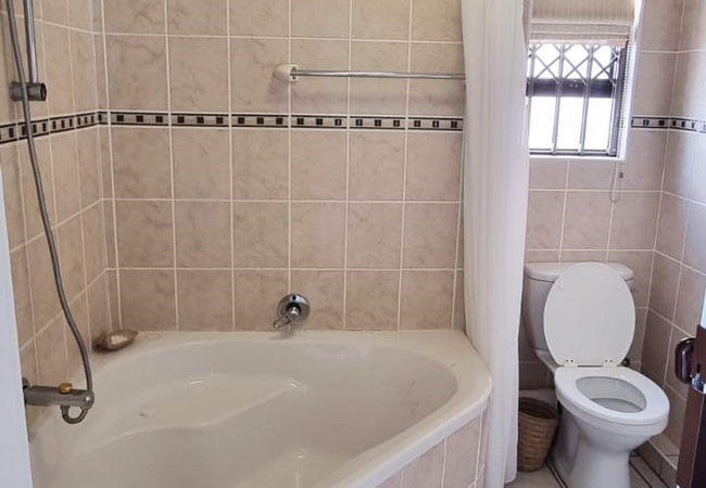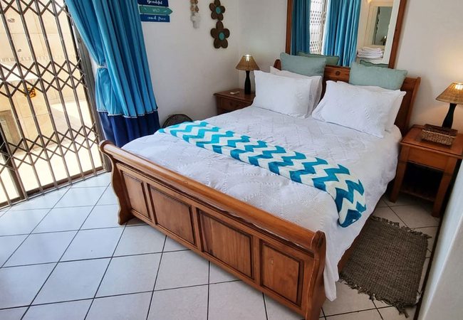 Carpe Diem 4 is a ground-floor entrance apartment that can accommodate up to 6 adults and 2 children and comprises 4 bedrooms, 2 bathrooms and an open-plan kitchen and living area. The main bedroom is furnished with a Queen-size bed and features an en-suite bathroom fitted with a bath with overhead shower, toilet, basin and a tumble-dryer. The second bedroom is furnished with a double bed and has access to the second bathroom fitted with a shower, toilet and basin. The third bedroom is furnished with two single beds. The fourth room is furnished with a double bed. Please note that only linen is supplied, guests need to bring their own towels. The kitchen is equipped with a stove, oven, microwave, fridge-freezer, washing machine, tea- and coffee-making facilities and cutlery and crockery. The adjacent living area has a TV with DStv connection so guests can bring their own DStv decoder and smart card. Explora decoders are not compatible. Through the sliding door, guests have access to a balcony with an outdoor dining area, a jacuzzi (at R2000 extra to be paid per stay), and a free-standing gas braai. The balcony boasts a view of the sea and the complex garden. With your vehicle parked securely, a peaceful night's rest in Margate is at hand.