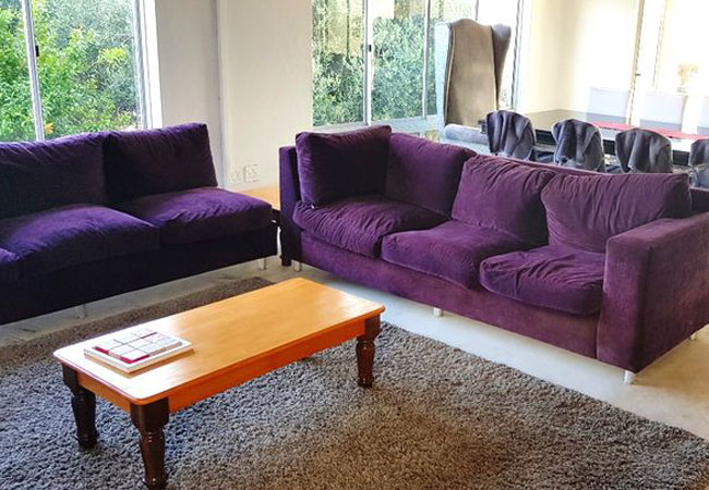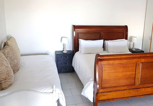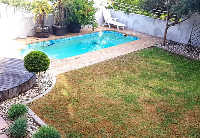Casa De Palmera has three en-suite bedrooms. The main bedroom has a King-size extra length bed. The other bedrooms have Queen-size beds and one of the rooms also has bunk beds. The en-suite bathrooms have a shower and the main en-suite also has a free standing bath. The kitchen is fully equipped for self catering and includes a washing machine and dishwasher. The living room has TV with satellite channels and there is an inside built-in braai and a fireplace. Outside there is a mobile braai on the furnished patio. The living area and patio have beautiful views. A double garage is available as well as off street parking. There is a well-manicured garden and a swimming pool.