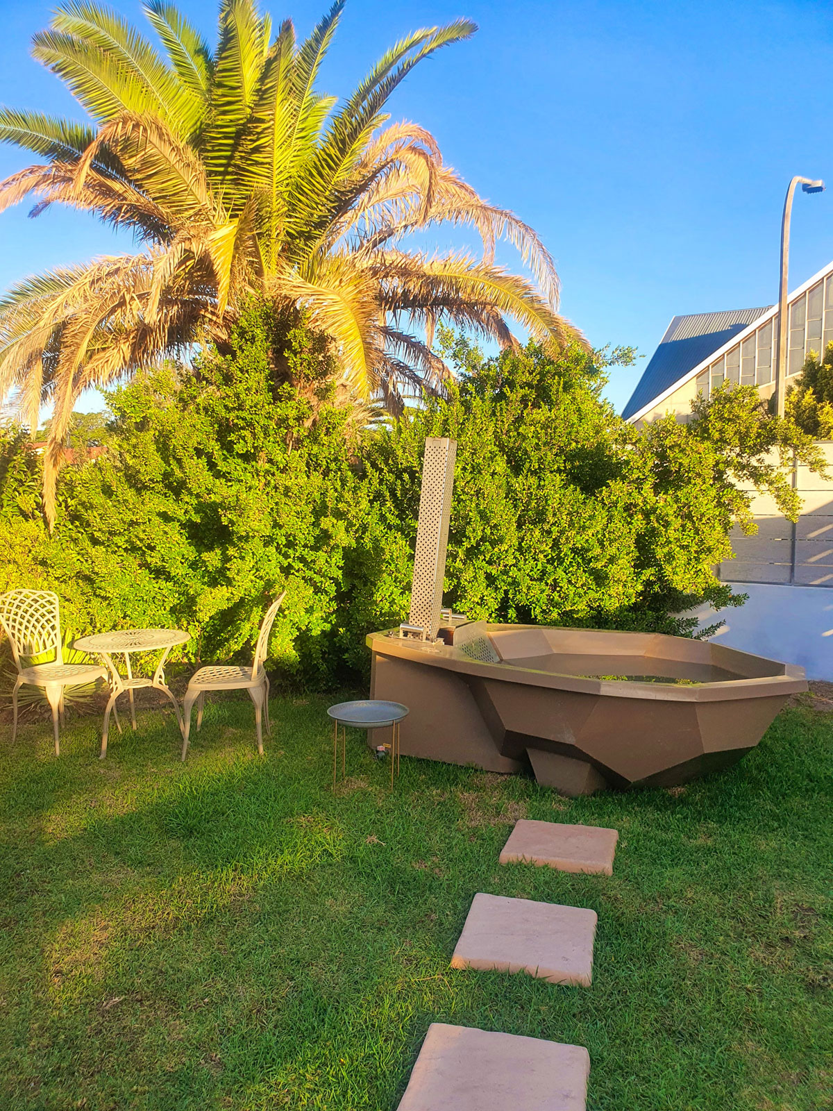 Casa La Mer Guesthouse is a modern and romantic stone cottage with a private entrance, situated in Strand, a seaside resort town in the Western Cape. It has an open-plan layout and accommodates 2 guests. It is furnished with a queen-size bed, and the bathroom is fitted with a shower. The kitchenette is equipped with a bar fridge-freezer, portable gas stove, slow cooker, toaster, kettle, microwave, and Nespresso coffee machine, as well as tea-and-coffee-making facilities. There is also a dining table suited for 2 people. Outside, guests will find a KolKol hot tub and will receive 1 complimentary bag of wood. The cottage is situated just 2 km from the beach and is close to superb golf courses and outstanding beaches.