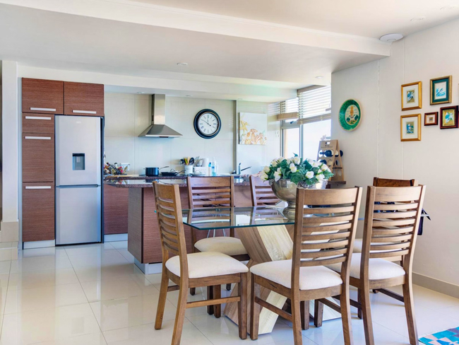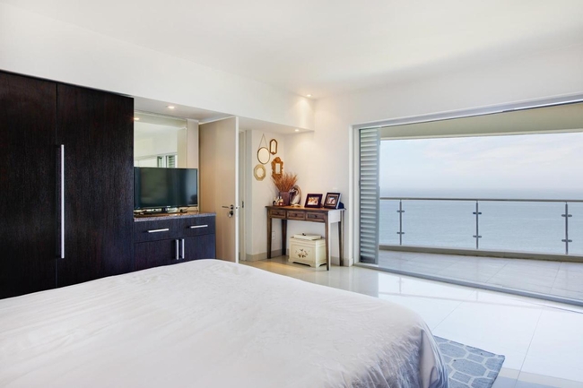 Opening onto a balcony with beautiful views of the pool and ocean, the rooms feature king-size beds and en-suite bathrooms. The open-plan living area includes a fully equipped kitchen, a dining space, and a lounge complete with a fireplace and TV. Wi-Fi is also available for added convenience. The unit is well-appointed with various amenities, including Wi-Fi, a sitting area, and a dining table. Guests can enjoy entertainment with Netflix and DSTV or satellite TV while taking in views of the sea, garden, pool, and city. The non-smoking unit also offers both a shower and a separate tub, along with coffee and tea-making facilities, a refrigerator, toaster, oven, and outdoor furniture for dining on the balcony.