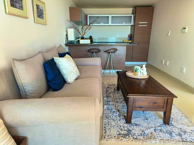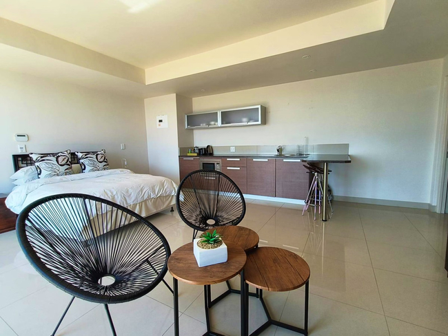 King Luxury Apartment is a comfortable studio holiday apartment. The open-plan unit boasts a spacious king-size bed and an en-suite bathroom featuring a shower. From the balcony, you can enjoy stunning views of the ocean. The kitchenette is equipped with a microwave, tea and coffee-making facilities, and a breakfast bar, offering convenience for light meals. For entertainment, a TV with access to streaming services, as well as Wi-Fi, is provided. This unit is designed for comfort, offering a variety of amenities, including Wi-Fi, a sitting area, and a TV with DSTV or satellite channels. Guests can enjoy Netflix, and the views extend to the sea, garden, and pool. The non-smoking unit features outdoor furniture on the balcony, perfect for taking in the surroundings.