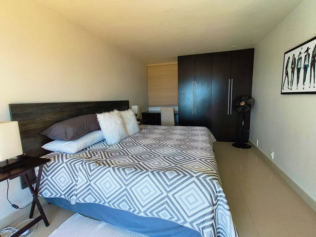 This spacious unit opens onto an expansive balcony, offering breathtaking views. Inside, the room features a king-size bed and an en-suite bathroom with both a separate tub and shower. The fully equipped kitchen includes a refrigerator, microwave, toaster, oven, and coffee and tea facilities. The living area boasts a dining space and a comfortable lounge with a TV offering streaming services and Wi-Fi. The unit provides a range of amenities to enhance your stay, including Wi-Fi, a sitting area, and a dining table. You can enjoy Netflix and DSTV or satellite TV while taking in views of the garden, ocean, and city. This non-smoking unit also includes outdoor furniture on the balcony, along with a dining area for al fresco meals.