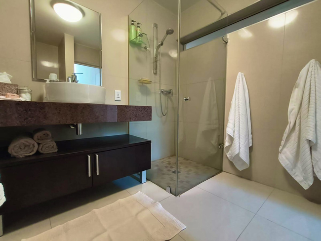 The property's innovative layout allows for the division of private sections, each fully equipped with amenities to ensure the privacy and comfort of every guest. The beautifully appointed units feature king-size beds and private bathrooms with either baths or showers.