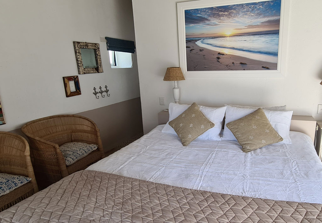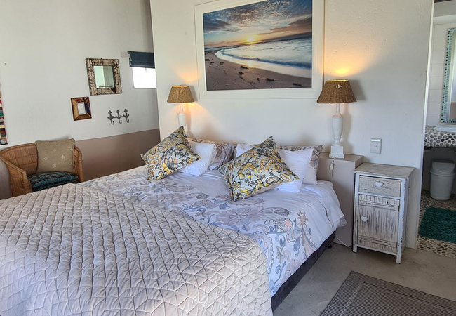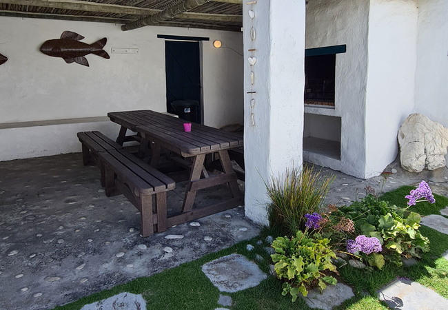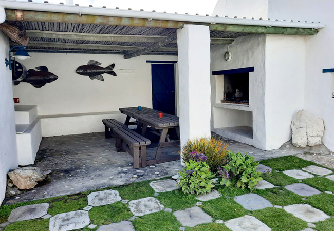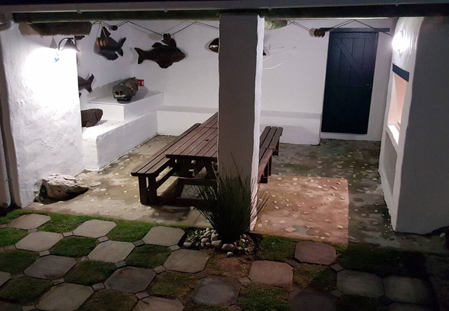 Casa Pescador has four bedrooms. The main bedroom is furnished with a King-size bed and the en-suite bathroom is fitted with a bath, shower, toilet and basin. The second bedroom is furnished with a Queen-size bed and has an en-suite bathroom fitted with a shower, toilet and basin. The third bedroom is located in the loft and is furnished with two three quarter beds, its own TV and shares a bathroom with the second bedroom. There is a private cottage which is furnished with a King-size bed and a bathroom with a shower toilet and basin. Guests need to bring their own towels. The kitchen is fully equipped with a fridge / freezer, chest freezer, gas stove, oven, dishwasher, microwave, deep fryer, toaster and coffee machine. Additional facilities include a smart TV with satellite channels and Netflix, DVD player, PVR decoder and laundry facilities in the garage. There is a fireplace in the living area. Free Wi-Fi is provided. Outside in the garden there is a large entertainment area which is undercover. There is a braai, dart board, umbrella, table and chairs. Secure parking is available for three cars.