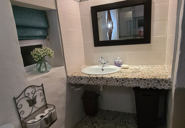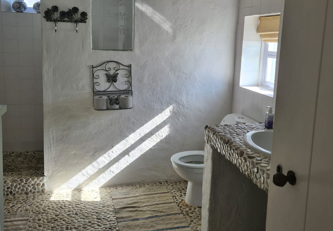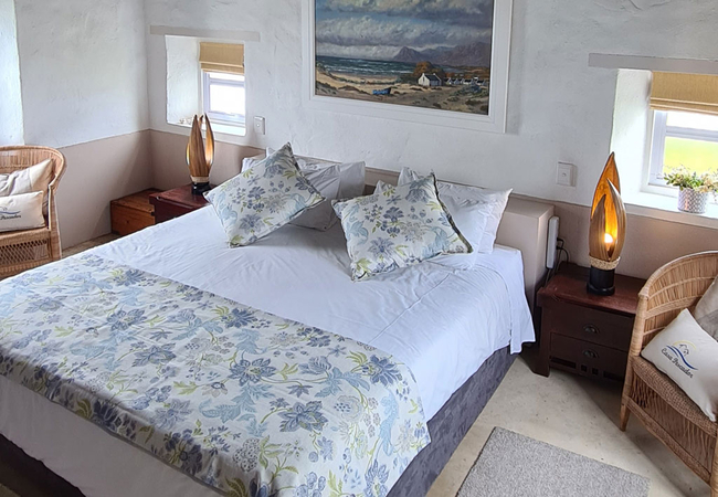 Casa Pescador is a self catering holiday home in Struisbaai with four bedrooms. The main bedroom is furnished with a King-size bed and the en-suite bathroom is fitted with a bath, shower, toilet and basin. The second bedroom is furnished with a Queen-size bed and has an en-suite bathroom fitted with a shower, toilet and basin. The third bedroom is located in the loft and is furnished with two three quarter beds, its own TV and shares a bathroom with the second bedroom. There is a private cottage which is furnished with a King-size bed and a bathroom with a shower toilet and basin. Guests need to bring their own towels.