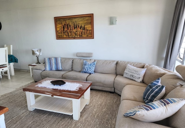 The large open-plan kitchen is fully equipped and adjoins a living area and a dining room table seating for six guests. The comfortable lounge has a television, but guests need to bring their own standard DStv decoder and card with connection cables.