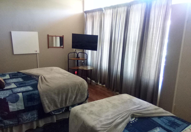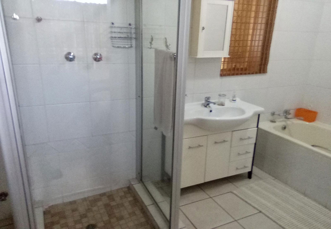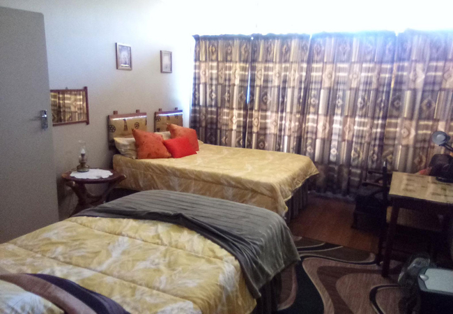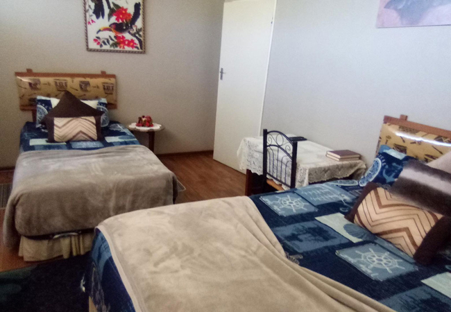 Queen Room is furnished with a Queen-size bed and a single bed. The rooms make use of a shared bathroom fitted with a bath, shower, toilet and basin. A TV with selected DStv channels, Wi-Fi access and a workstation are available in each room and electric blankets and swimming towels are provided.