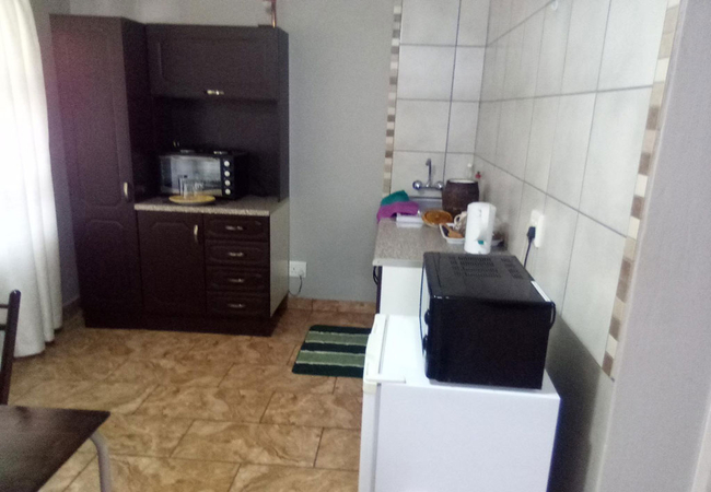 Self-catering Queen Room is open plan and furnished with a Queen-size and twin beds. The en-suite bathroom is fitted with a bath, shower, toilet and basin. The kitchenette is equipped with a 2-plate stove, oven, microwave and bar fridge. A TV with selected DStv channels, Wi-Fi access and a workstation are available in each room and electric blankets and swimming towels are provided.