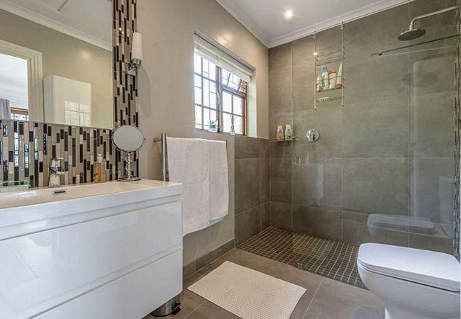The dining area is furnished with an eight seater table and the lounge features a flat-screen TV with a DStv decoder, as well as a micro Hi-Fi system with a CD player.