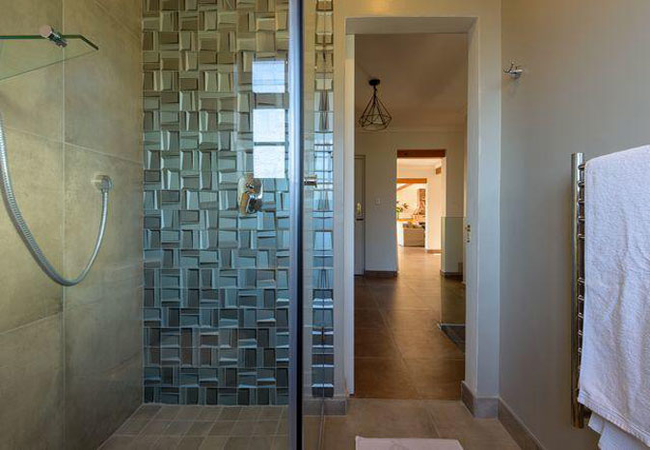 Catch the Breeze is a tastefully decorated house offering four bedrooms and three bathrooms. Each bedroom is furnished with a King-size bed (three of which can easily be converted to twin beds). The fully equipped kitchen contains a gas stove with an electric oven, a fridge-freezer with ice and water dispenser, a microwave, utensils, cutlery and crockery. There is also a separate scullery area with a dishwasher, washing machine, and a tumble dryer. The dining area is furnished with an eight seater table and the lounge features a flat-screen TV with a DStv decoder, as well as a micro Hi-Fi system with a CD player. Free Wi-Fi Internet access is available in the entire house and most parts of the spacious patio. The lounge leads out to the patio, which boasts a north facing, solar panel heated swimming pool surrounded by a well manicured garden. From the large patio, one can admire lovely views of the Knysna Lagoon over the Knysna Golf Course and the picturesque Outeniqua Mountains in the blue distance.