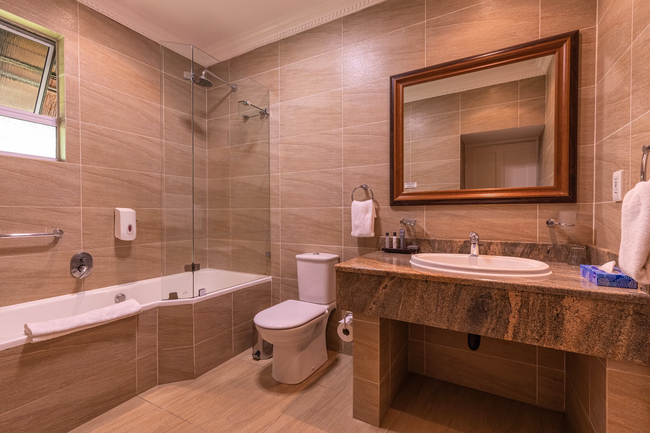 These contemporary rooms are designed to accommodate two guests, offering the choice of either a king-size bed or two single beds. For families, adjacent rooms are connected by an inter-leading door, providing convenient access. Each room boasts an en-suite bathroom that features both a bath and a shower. Guests will find a variety of amenities, including a television with selected channels, a fan, underfloor heating, a telephone, and a mini-bar stocked upon request. Additionally, tea- and coffee-making facilities are provided, and each room opens onto a private verandah for outdoor relaxation. These non-smoking rooms also include a patio and a private entrance, ensuring guests enjoy their own space. Room service is readily available, and housekeeping is conducted daily to maintain a welcoming environment. Guests have access to wireless internet and can request wake-up calls for their convenience. The en-suite bathroom is equipped with a bath and shower, complete with soaps and essential toiletries, and features underfloor heating for added comfort. Room facilities include a fan, a safe for valuables, and the convenience of underfloor heating. A hair dryer is provided for guest use, while refreshments can be enjoyed from the bar fridge and tea and coffee tray available in the room. Entertainment is easily accessible with exclusive DStv channels and a television for leisurely viewing. The rates for these rooms include dinner, lunch, bed and breakfast, along with mid-morning and afternoon tea, ensuring a delightful and satisfying stay.