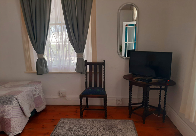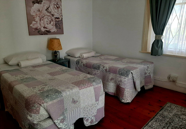 House Room is furnished with two single beds and makes use of a separate shared bathroom down the hall that is fitted with a shower, bath, toilet and basin. The room is equipped with an air-conditioner, tv, microwave, fridge, cutlery, crockery and coffees, teas, milk and sugar. Towels are included and a working space.
