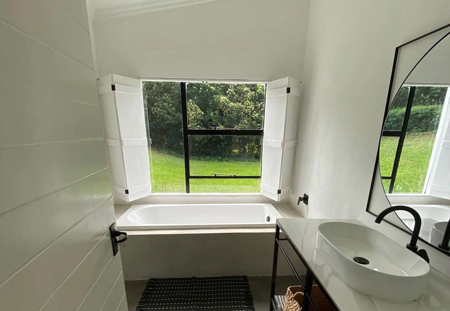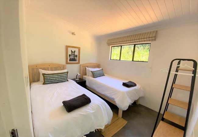 Caversham Woods Cottage Four can accommodate up to six guests in three bedrooms. The main and second bedroom are furnished with a King-size bed. The third bedroom is furnished with two single beds. The main en-suite and the shared bathroom are fitted with a bath, shower, toilet and basin.