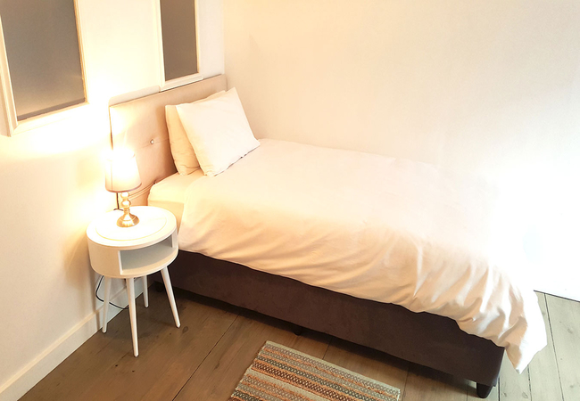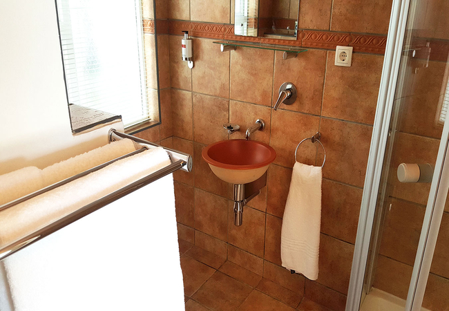 This is a Single, en-suite guest room with a small courtyard (Room 3). All our en-suite guest rooms are well-furnished and feature comfortable beds with crisp, white linen. A microwave oven, small fridge, kettle and all necessary crockery and cutlery are provided in every room as well as a TV with standard channels.