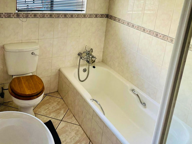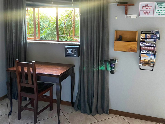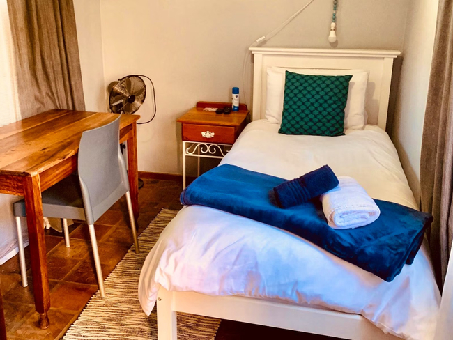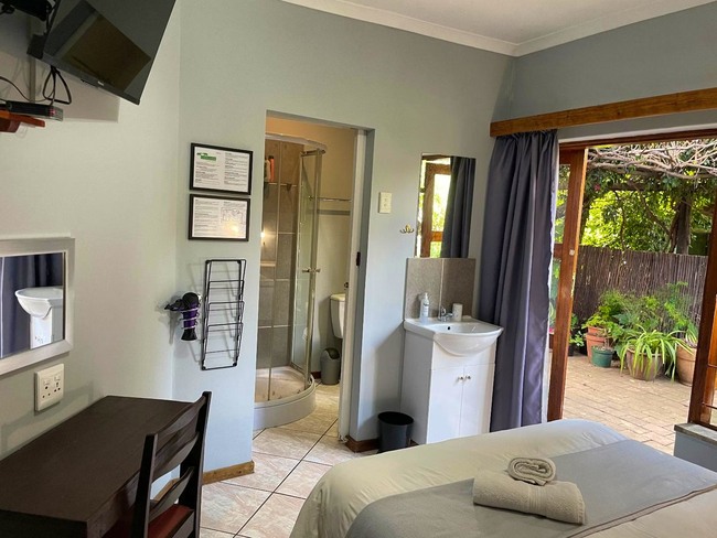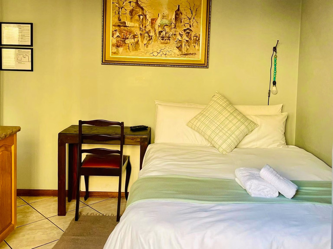 Ideal for couples or friends, the Kiepersol Double Room accommodates up to two guests. The room is furnished with a comfortable double bed and features an en-suite bathroom with a shower, washbasin, and toilet. Linen and towels are provided for your convenience. The room includes a bar fridge, tea- and coffee-making facilities, a desk, and a Smart TV. A communal kitchen is available for guests, equipped with a fridge-freezer, gas stove, oven, microwave, and all necessary cutlery and crockery. Enjoy access to Wi-Fi throughout your stay. Outside, guests can take advantage of the communal lapa with braai facilities, a lovely garden, and a shared swimming pool. The property ensures safety with 24-hour security and provides secure parking.