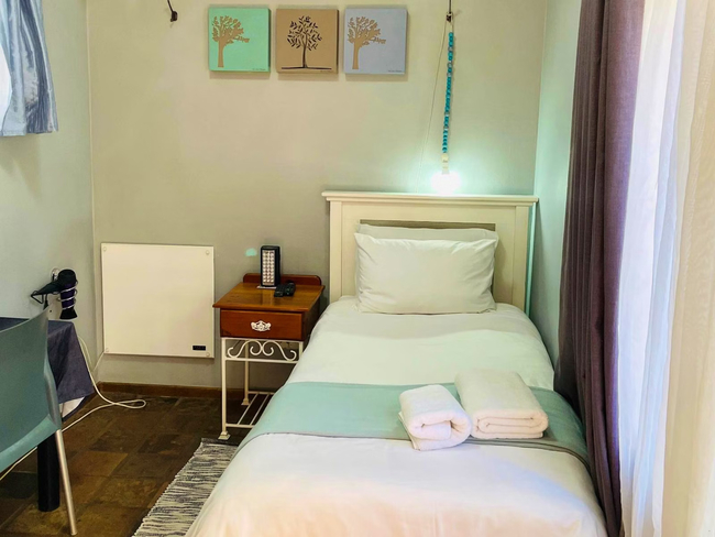 Ideal for solo travelers, the Boekenhout Single Room offers a comfortable retreat with space for one guest. The room features a single bed and an en-suite bathroom equipped with a shower, washbasin, and toilet. For added convenience, linen and towels are provided. Guests can enjoy a well-appointed kitchenette, complete with a bar fridge, a one-plate induction stove, a microwave, cutlery, crockery, and tea- and coffee-making facilities. The room also includes a desk, Smart TV, and access to Wi-Fi. Outside the room, guests can unwind in the communal lapa with braai facilities, a charming garden, and a shared swimming pool. The property ensures security with 24-hour monitoring and offers safe parking for added peace of mind.