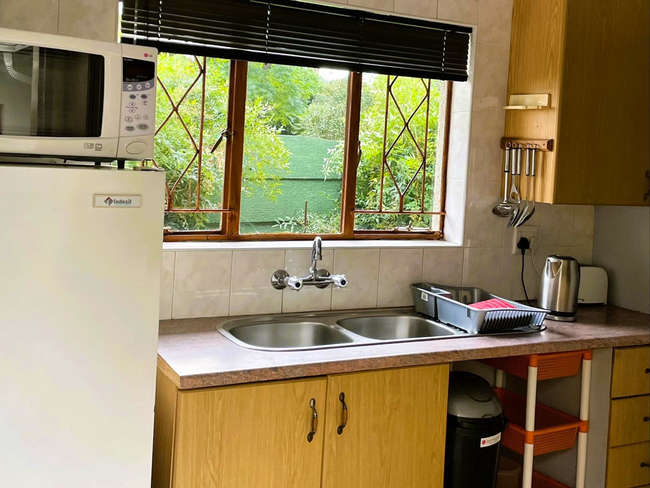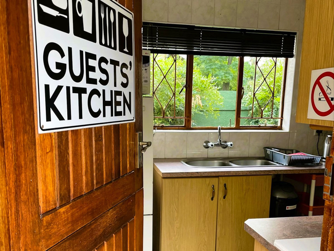 Guests have access to complimentary Wi-Fi, a fully furnished communal kitchen, and a thatched lapa area with gas braai facilities. The shared kitchen is well-appointed with a gas stove and oven, a full-size refrigerator, a freezer, and all essential amenities.