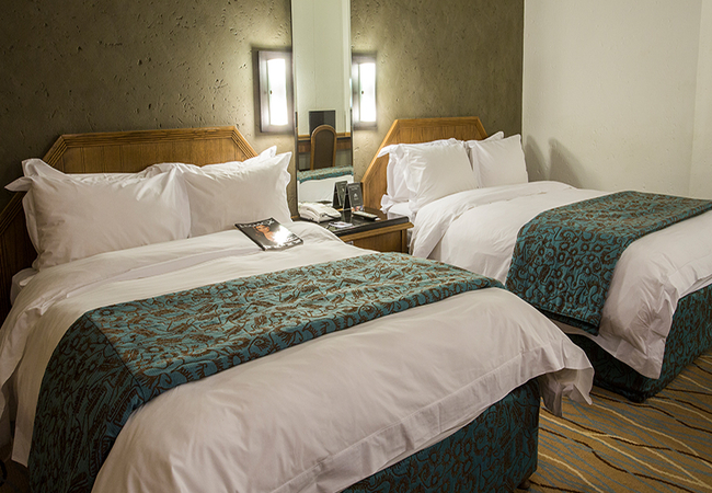 The Standard Twin Rooms are furnished with two double beds. The rooms have individual air-conditioning, LCD TV, tea and coffee-making facility, bathroom with bath, shower over bath, direct dialling telephones, electric razor plugs (100/200V), hairdryer, internet access and an electronic safe.