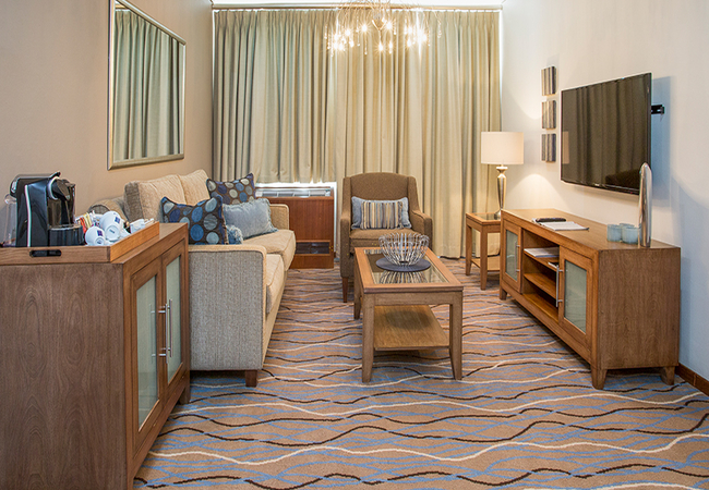 The Studio Suite is furnished with a King-size bed. A sleeper couch may be used to accommodate additional guests. The rooms have individual air-conditioning, a walk-in wardrobe, LCD TV, tea and coffee-making facility, bathroom with bath, shower over bath, direct dialling telephones, lounge, mini-bar, electric razor plugs (100/200V), hairdryer, internet access and an electronic safe.