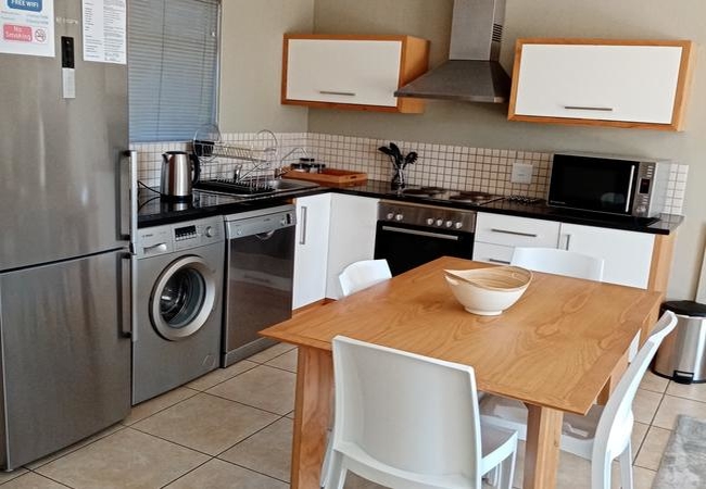 Fully fitted and equipped two bedroom apartment. The main bedroom is furnished with a Queen-size bed and has an en-suite bathroom. The second bedroom is furnished with two single beds and has a separate bathroom. There is an open plan kitchen and lounge area, Flat screen TV and unlimited WiFi. All apartments feature apartment-style conveniences. They are fully equipped and furnished and have comfortable lounge and dining areas. Facilities include unlimited Wi-Fi, hotel DStv and free secure parking for our guests. This apartment features a fully-equipped kitchen.