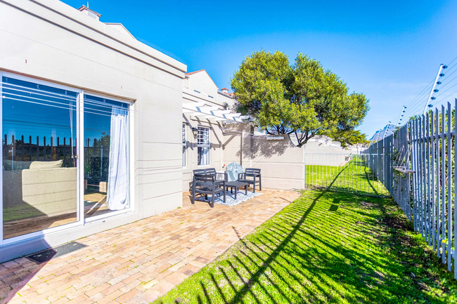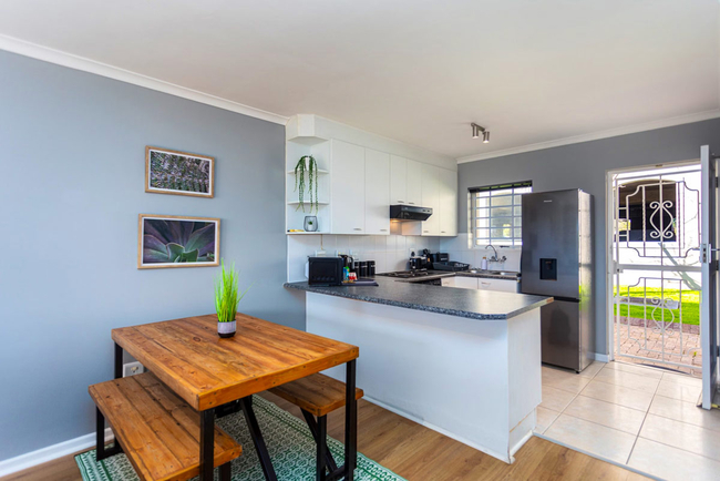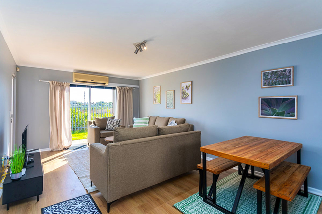 Guests can make the most of the Cape Town climate in the apartment’s private garden area, which includes outdoor seating ideal for leisurely afternoons.