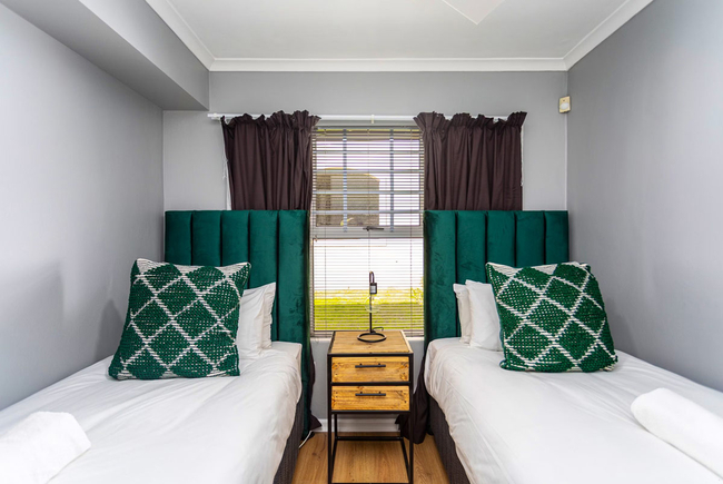 Century on Lake A45 offers a refined self-catering experience in the sought-after Century City precinct of Cape Town. Positioned within the well-regarded Century on Lake complex, this apartment places guests within easy reach of premier shopping centres, a variety of dining options, and key transport routes, making it an ideal choice for both leisure and business travellers. Designed to accommodate up to four guests, the apartment comprises two well-appointed bedrooms and two bathrooms. The main bedroom is furnished with a double bed and features an en-suite bathroom fitted with a shower, while the second bedroom is arranged with two single beds and has access to a separate bathroom equipped with a bath. All linen and bath towels are provided to ensure a comfortable stay. The kitchen is fully equipped with practical appliances including a stove, oven, microwave, kettle, and a fridge-freezer, offering all that’s needed for convenient self-catering. Adjacent to the kitchen, the open-plan lounge and dining area provide a relaxed space for meals and unwinding, complete with plush seating. Entertainment is taken care of with a smart TV offering streaming services and uncapped Wi-Fi. Guests can make the most of the Cape Town climate in the apartment’s private garden area, which includes outdoor seating ideal for leisurely afternoons. The complex further enhances the guest experience with access to a communal swimming pool and a shared braai area, as well as the convenience of a dedicated parking bay.