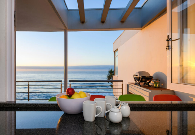 There is a bar counter with stools where you can enjoy your meals and stacking doors that open out onto the balcony for an indoor, outdoor feel.