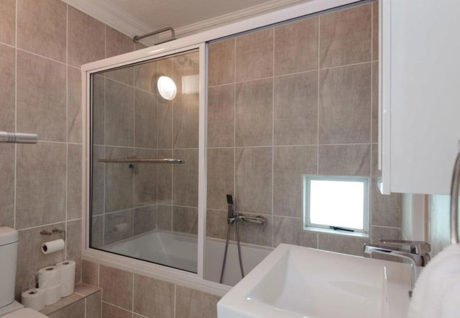 The stylish open plan living area has comfy seating and a TV with Netflix and free Wi-Fi. The kitchen is fully equipped for your self catering requirements and boasts a washing machine, tumble dryer and dishwasher for convenience.