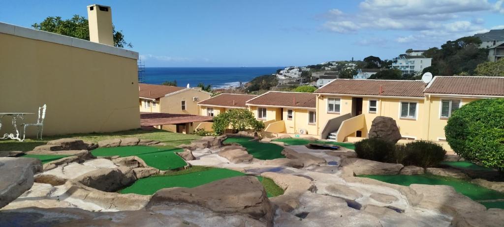 Guests have access to a range of resort amenities, including a swimming pool, putt-putt course, giant chessboard, and a children's play area.