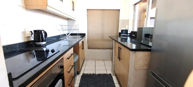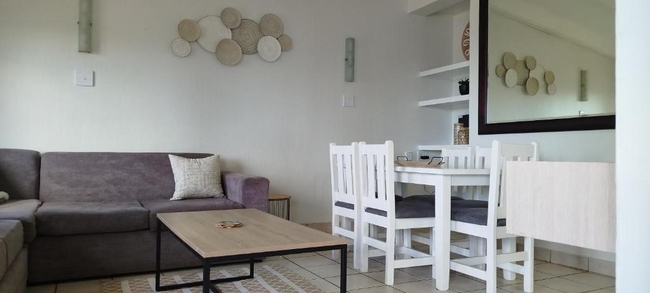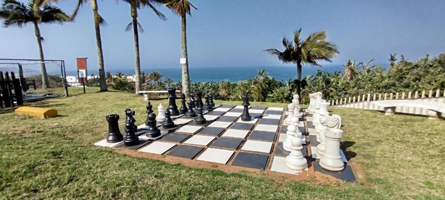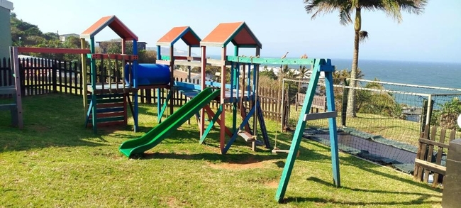 Chaka's Rock Chalets 33 is a self-catering apartment located in a secure complex in the heart of Shaka's Rock, Ballito. Perfect for a getaway on the Dolphin Coast, the complex features an inviting swimming pool for guests to enjoy. The apartment can comfortably accommodate two adults and two children and consists of two bedrooms and a bathroom. The main bedroom is furnished with a double bed, while the second bedroom has two single beds suitable for children. The bathroom is fitted with a shower, washbasin, and toilet. Linen and bath towels are provided, but guests are requested to bring their own beach towels. The open-plan living area includes a fully equipped kitchen with a stove, oven, microwave, fridge-freezer, cutlery, crockery, and tea- and coffee-making facilities. The lounge, adjacent to the kitchen, offers comfortable seating and a TV with self-login streaming services. Free Wi-Fi is available. The living area opens onto a private balcony with braai facilities, offering the perfect space to unwind. Guests have access to a range of resort amenities, including a swimming pool, putt-putt course, giant chessboard, and a children's play area.