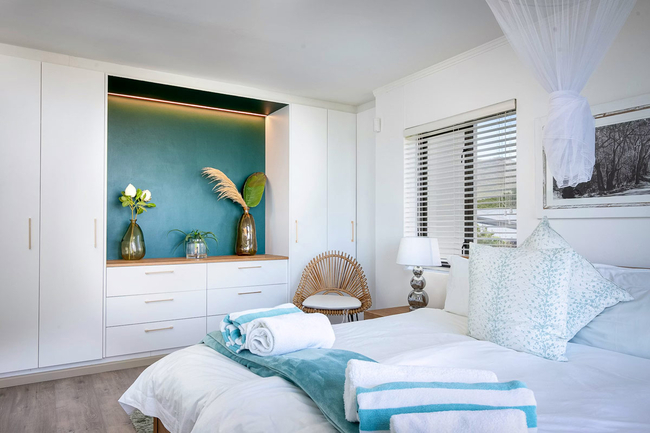 The villa is tastefully decorated in an elegantly eclectic collection of gems. It has lovely views of the ocean and a heated swimming pool for warm summer days and evenings, as well as views of the verdant valley and mountains. The four bedrooms and three bathrooms make Chapman's Villa ideal for families or groups of friends. The living space is open, light and airy, thanks to clever interior design. The fully-equipped kitchen flows into the elegant dining areas and lounge, and out onto the garden. The main bedroom is opulent and has an en-suite bathroom for added convenience. The other three bedrooms share two gorgeous family bathrooms and have king- or queen-sized beds. Two of the three bedrooms have balconies that look out over the valley, and the other two have impressive mountain views. The bed linen is of a superior quality and hairdryers are provided. The elegant kitchen is finished in Caeserstone surfaces and stylish appliances. It has a Nespresso™ machine, dishwasher, and all of the necessary crockery and cutlery. The dining room seats eight people. In addition, Chapman's View Villa has a washing machine, TV with premium DStv channels, DVD player, music system, Wi-Fi, three sun loungers, and towels for the bath and beach. To make your stay at Chapman's View even more comfortable, there are braai / barbecue facilities, a parking garage, on-site parking, and a fully-enclosed garden. A weekly cleaning service is par for the course, but can be increased by prior arrangement. The alarm system means that guests can relax in safety and the pool and garden services are there to make sure that everything stays as pristine as intended.
