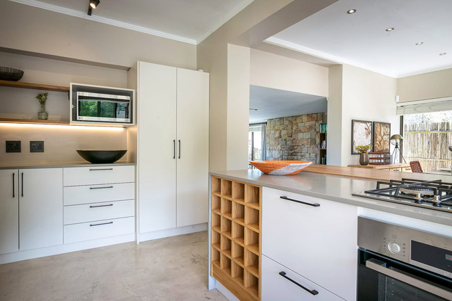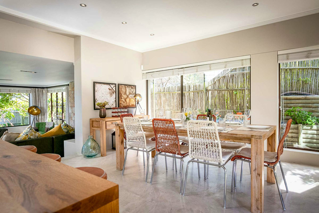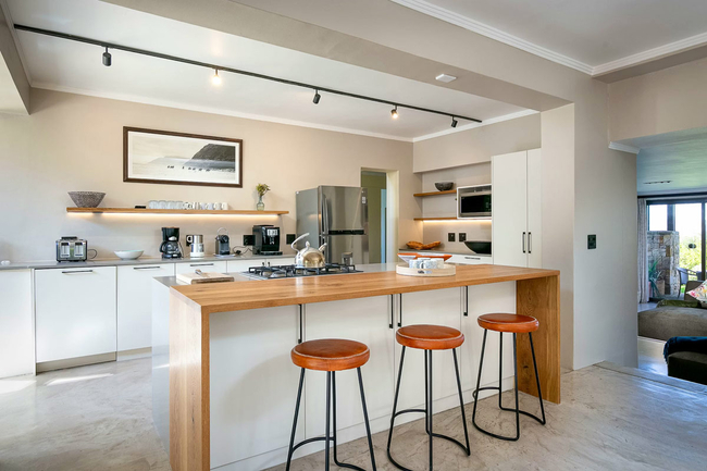 The elegant kitchen is finished in Caeserstone surfaces and stylish appliances. It has a Nespresso™ machine, dishwasher, and all of the necessary crockery and cutlery. The dining room seats eight people. In addition, Chapman's View Villa has a washing machine, TV with premium DStv channels, DVD player, music system, Wi-Fi, three sun loungers, and towels for the bath and beach.