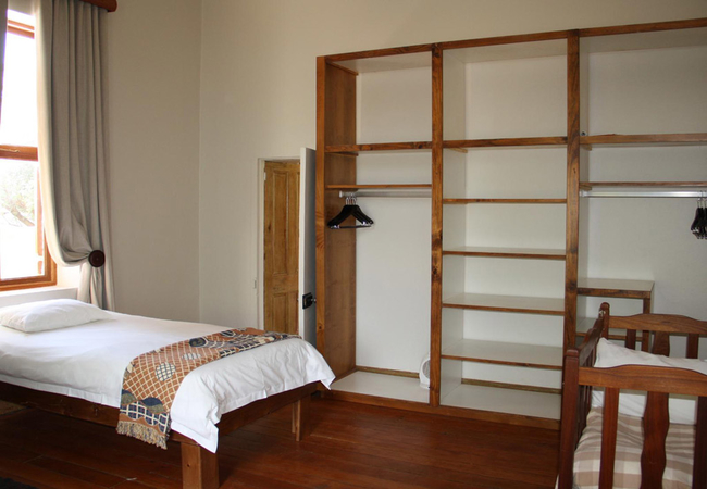 The Family Room has beautiful garden views, large open windows and is able to accommodate five guests. There is a double bed and a single bed, covered in quality sheets. The en-suite bathroom offers great water pressure and is fitted with a shower. The rooms are each equipped with tea / coffee making facilities, an emergency light in case the power goes out, insect repellent plugs and complimentary Wi-Fi access. Your stay is completed with a three course dinner and full English breakfast as well as a turn-down service.