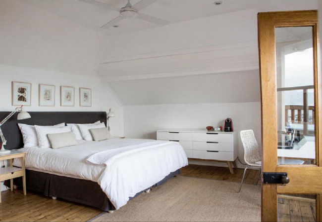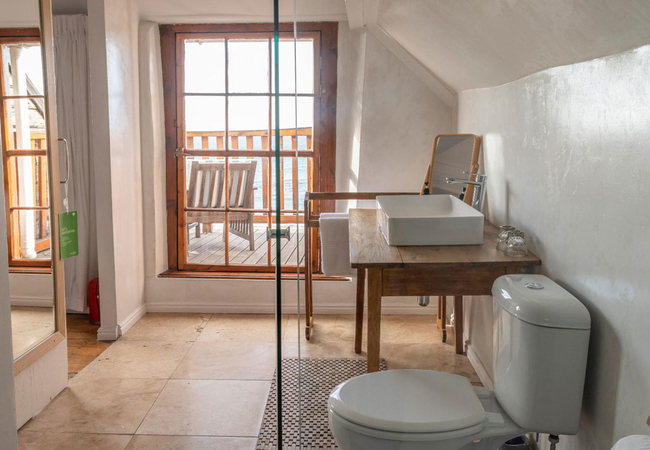 Our Loft is situated on top of the building. The best view is guaranteed! It invites you to enjoy a glass of Champaign on the wooden deck while watching the whales. The Loft is stylishly furnished with a king-size bed, TV, safe and en-suite bathroom.
