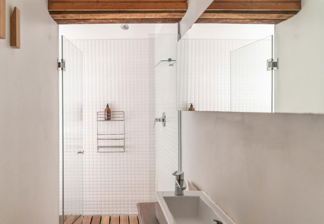 This is a basic, small room featuring a compact double bed and a walk-in shower. Located outside the main guesthouse, it offers limited space and is accessed via the garden or pool area. The room does not have views or a TV, but Wi-Fi is available. Amenities include a hairdryer, microwave, bar fridge, bathroom essentials, and cleaning service. The room is non-smoking and equipped with a shower only.