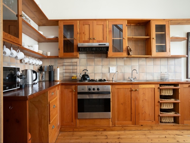 Located on the middle floor of the house next to Chartfield, the self-catering apartment has two bedrooms and bathroom and a fully equipped kitchen. It's ideal for families, but can be tricky for noise-sensitive people. You have access via the garden to all facilities at Chartfield Guest House. Flat screen TV with 8 DSTV channels.