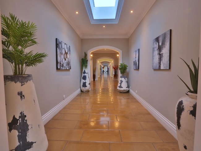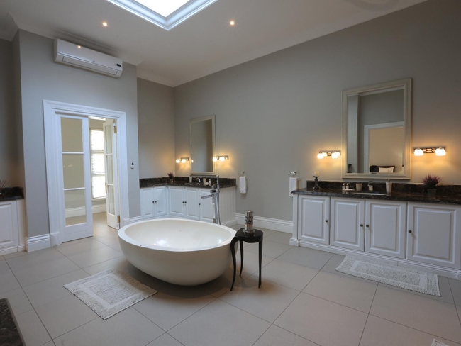 Four lavish en-suite bedrooms sleeps 8 guests in style. The house is fully air-conditioned with an expansive dining and living area, a gourmet kitchen and a study area. Unwind on the veranda, relax in the Jacuzzi deck area, or enjoy a game on the basketball practice court. As you enter, the spacious and welcoming interior unfolds before you. The open-plan design effortlessly connects the living, dining, and kitchen areas, creating a seamless flow ideal for both leisure and entertaining. A private garden serves as a tranquil retreat, complete with landscaped grounds and peaceful seating areas where guests can soak in nature's beauty. Chateau Crystal offers four luxurious en suite bedrooms, each furnished with opulent double showers and baths, providing a sanctuary of relaxation. The main house accommodates up to 10 guests and is fully air-conditioned, ensuring a comfortable atmosphere year-round. The home's impressive design includes a 90-meter hallway that leads to an expansive dining and living area, beautifully illuminated by exquisite crystal chandeliers. The spacious gourmet kitchen is fully equipped to meet all culinary desires, and a dedicated study area with high-speed WiFi is perfect for those needing to work remotely. Guests can unwind on the generous veranda, enjoy the jacuzzi deck area, or play on the basketball practice court. For ultimate convenience, the estate features paved and tarred roads for easy access and a helicopter pad for added luxury. Outdoor amenities include seven charming dams, with three stocked for trout fishing, as well as meticulously landscaped gardens and manicured lawns. Bedroom 1 sleeps 3 guests in one Queen-sized bed and one three-quarter bed. The en-suite bathroom is equipped with a shower, hand basins and WC. Bedroom 2 sleeps 2 guests in one Queen-sized bed. The en-suite bathroom is equipped with a shower, hand basin and WC. Bedroom 3 sleeps 2 guests in one Queen-sized bed. The en-suite bathroom is equipped with a shower, hand basins and WC. Bedroom 1 sleeps 3 guests in one Queen-sized bed and one three-quarter bed. The en-suite bathroom is equipped with a shower, hand basins and WC. There is an additional guest toilet room.