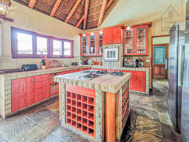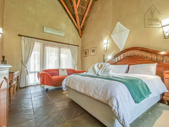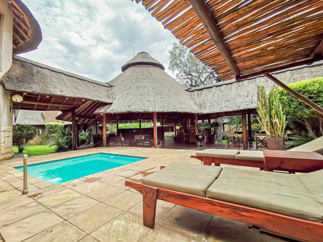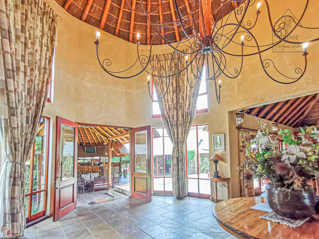 This spacious lodge accommodates up to 18 guests and features 6 air-conditioned bedrooms, 4 bathrooms, and an additional guest toilet. The main bedroom includes a queen-size bed and a full en-suite bathroom. Three further bedrooms are each furnished with a queen-size bed, while one of these enjoys the benefit of an en-suite bathroom fitted with both a bath and a shower. Two additional bedrooms are designed with flexibility in mind, each offering 2 single beds together with a double bed in a charming loft area. The larger loft space contains another 2 single beds, making it ideal for families or younger guests. The remaining bathrooms are equipped with both a shower and a bath. Fresh white linen and bath towels are supplied for convenience, although guests are requested to bring their own swimming towels. The air-conditioned open-plan living area provides everything needed for a comfortable stay. The fully equipped kitchen is fitted with a gas stove, electric oven, microwave, fridge-freezer, and complete sets of cutlery and crockery, while a separate scullery houses a dishwasher for added ease. A central dining table encourages shared meals, and the adjoining lounge invites relaxation with comfortable seating, a fireplace, and a flat-screen TV with DStv. Complimentary Wi-Fi is accessible throughout the property. A highlight of the lodge is its covered entertainment area, which serves as the heart of the home. This versatile space includes a firepit, an additional kitchen with a stove, a well-appointed bar with its own television, a lounge area, and another dining table, making it the perfect spot for social gatherings. Outside, guests can enjoy a splash pool surrounded by sun loungers, offering the ideal setting for leisure and unwinding. Guests are also free to take part in the wide variety of activities offered within Zebula. Experiences range from close-up elephant interactions and Big 5 game drives to adventurous pursuits such as horseback riding and quad biking, ensuring there is something for every taste and energy level.