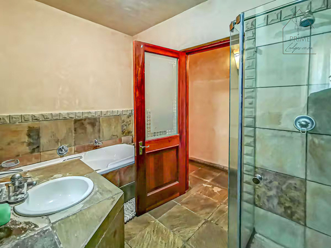 This spacious lodge accommodates up to 18 guests and features 6 air-conditioned bedrooms, 4 bathrooms, and an additional guest toilet. The main bedroom includes a queen-size bed and a full en-suite bathroom. Three further bedrooms are each furnished with a queen-size bed, while one of these enjoys the benefit of an en-suite bathroom fitted with both a bath and a shower.