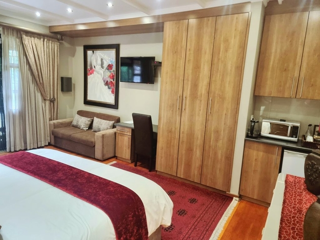 Ideal for up to three adults or two adults and two children, this air-conditioned room features a comfortable king-size bed and a double sleeper couch. The full en-suite bathroom includes both a bathtub and a shower combination, ensuring a relaxing experience. Within the room, guests will find a desk, a television, and access to Wi-Fi. A bar fridge, microwave, and a tea and coffee station add further convenience. The room is equipped with various amenities to enhance your stay, including complimentary Wi-Fi, a flat-screen TV, and a designated sitting area. For your comfort, air conditioning is provided, along with a writing desk and a secure safe for valuables. Enjoy views of the garden from your room, and make use of the regular cleaning service to keep your space tidy. Bathroom essentials are also provided.