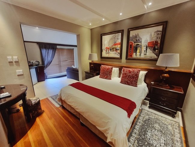 The air-conditioned room features a versatile king-size bed that can be converted into twin beds, along with a double sleeper couch, a television, and a full en-suite bathroom. The private lounge area is thoughtfully appointed with comfortable seating, a desk, a bar fridge, a microwave, and a tea and coffee station. Complimentary Wi-Fi is also available. The room provides a variety of amenities, including free Wi-Fi, a television, and a designated sitting area. It is non-smoking and equipped with air conditioning to ensure comfort. Guests can make use of a writing desk, a secure safe, and enjoy regular cleaning service. The room offers a charming view of the garden. The en-suite bathroom includes both a separate tub and shower, and guests can enjoy convenient coffee and tea-making facilities, as well as a microwave and bar fridge.