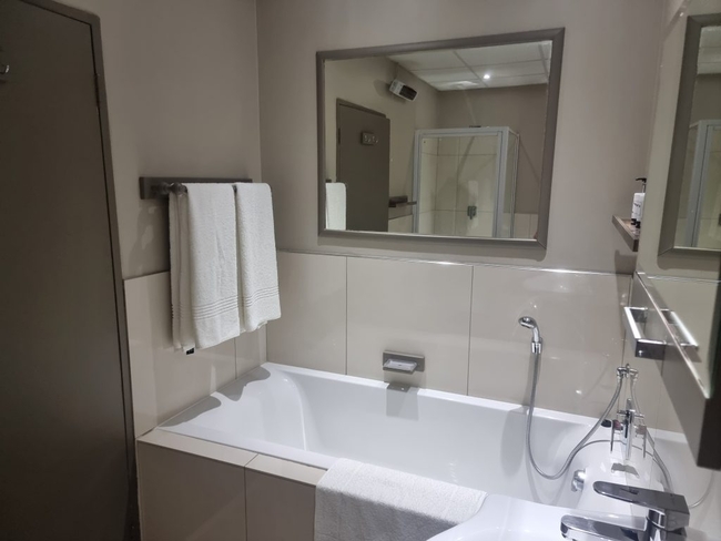 The room is comfortably furnished with a queen-size bed and features air conditioning for a pleasant stay. It includes a full en-suite bathroom with a combination bathtub and shower. Guests will find a bar fridge, microwave, and a tea and coffee station, along with a desk, a television, and access to Wi-Fi. The room comes with a range of amenities, including complimentary Wi-Fi, a flat-screen TV, and a comfortable sitting area. It is non-smoking and provides air conditioning for comfort. A work desk, a secure safe, and regular cleaning service are also available. Guests can enjoy a view of the garden from the room. Additional amenities include bathroom essentials, coffee and tea facilities, a microwave, and a bar fridge for added convenience.