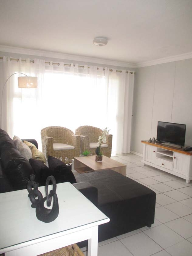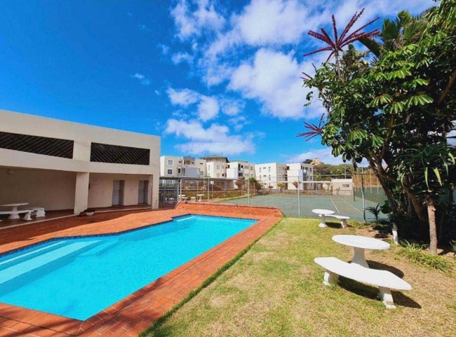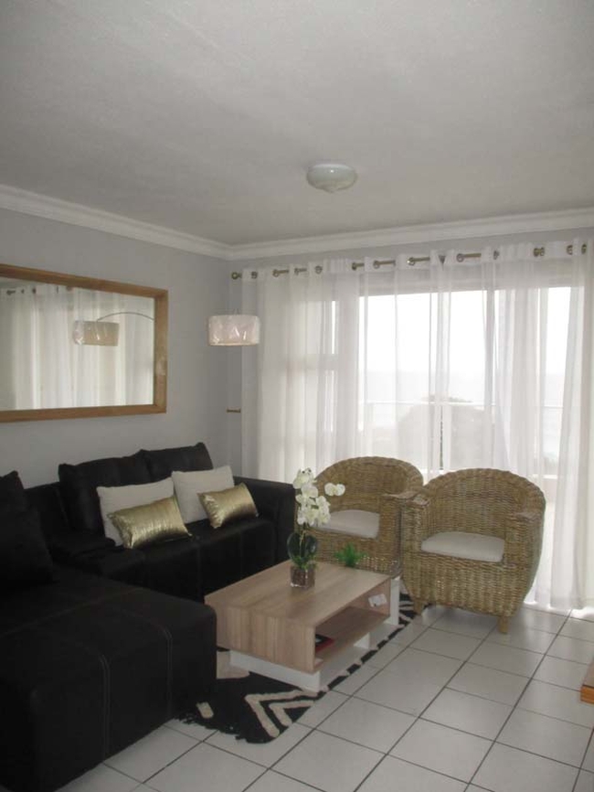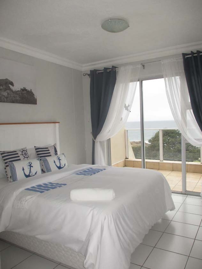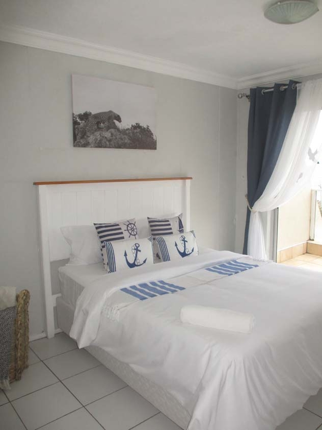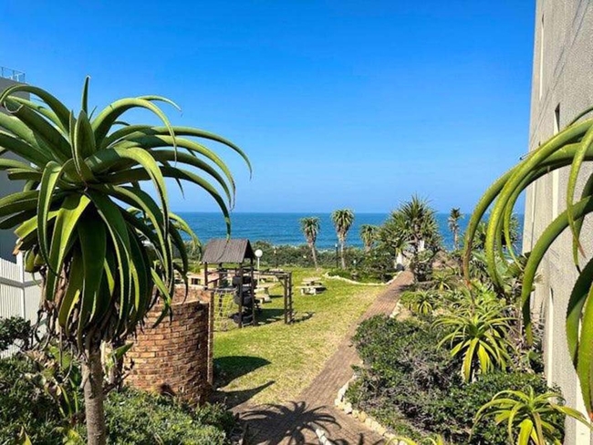 The apartment comfortably accommodates up to four guests and features two inviting bedrooms and two bathrooms. Both bedrooms are furnished with double beds, making the space equally suitable for couples or small families. The main bedroom enjoys the convenience of an en-suite bathroom with a shower, toilet, and basin, while the second bathroom also offers a shower, toilet, and wash basin. The open-plan living area is designed for relaxed holiday living. A fully equipped kitchen includes a stove and oven, fridge-freezer, microwave, dishwasher, kettle, and toaster, allowing for effortless self-catering. Meals can be enjoyed at the four-seater dining table, while the lounge offers comfortable seating and a flat-screen TV with an OpenView decoder. The living area opens onto a private balcony — the perfect spot to soak in the sea air. Linen and bath towels are provided; however, guests are requested to bring along additional bath and beach towels. Guests can enjoy sweeping ocean views, a communal swimming pool open year-round, a children’s jungle gym, and shared braai facilities ideal for relaxed outdoor meals. The property is surrounded by a lush garden and also features a tennis court for active guests. Secure on-site parking is available, including carport parking, guest parking on a first-come-first-served basis, and space for trailers. Please note that the apartment is located on the second floor and the complex is not pet-friendly. Wi-Fi is not available.