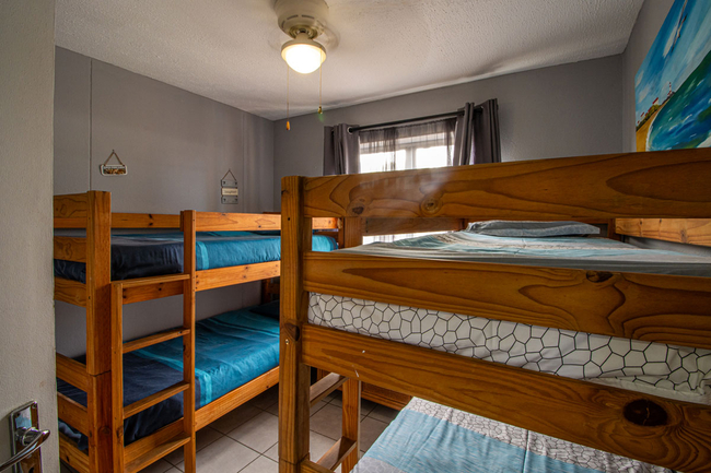 The main bedroom is fitted with a double bed, while the second bedroom is designed for younger guests with two child-only bunk beds. There is a double sleeper couch in the lounge for 2 extra adults. One bathroom is equipped with a shower, while the other has a shower-over-bath combination. Quality linen is supplied, but guests are kindly requested to bring their own towels.