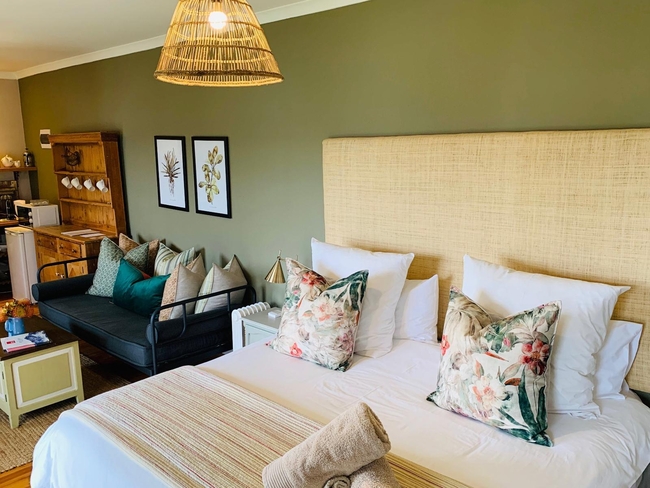 This charming open-plan cottage offers a warm and welcoming retreat, perfect for a peaceful escape. The bedroom flows seamlessly into the living area and features a plush king-size bed dressed in luxurious 400-thread-count linen, with an electric blanket provided during the winter months for added comfort. The fully equipped kitchen caters to all your self-catering needs and includes a stove, oven, microwave, refrigerator, and both coffee and tea-making facilities—with freshly ground coffee and a plunger provided to start your day right. The bathroom is fitted with a shower, basin, and toilet, along with complimentary amenities and a hairdryer for your convenience. Guests can relax in the cosy sitting area beside the fireplace or step outside to enjoy the fresh air on the private patio or terrace. Additional features include Wi-Fi, an iron and ironing board, and a non-smoking environment to ensure a comfortable stay.